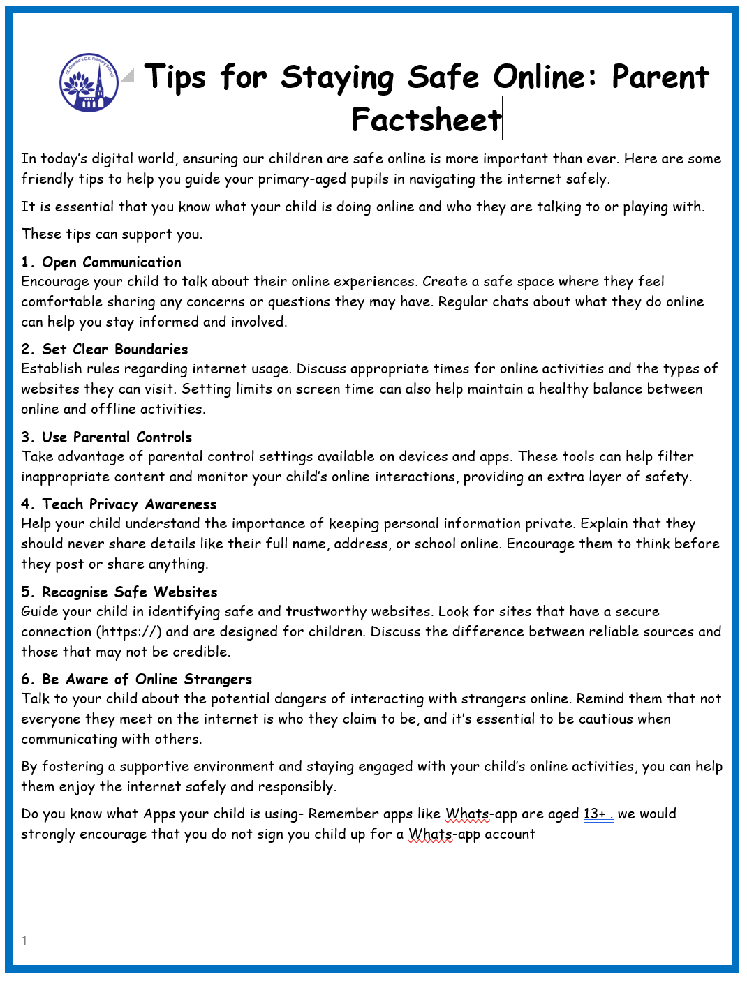 Useful Parent Leaflet
